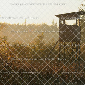 hochsitz, nebel, morgen … hochsitz im morgennebel, mystisches licht